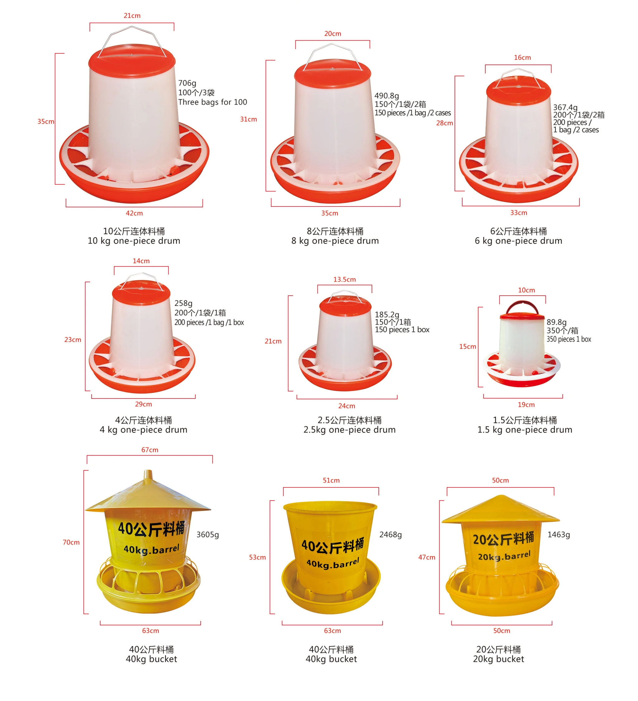 6kg material bucket: 28cm high, 33cm bottom diameter, individual weight 296g, 1 box/bag for every 200 pieces, can meet the storage needs of more poultry feeding at the same time.